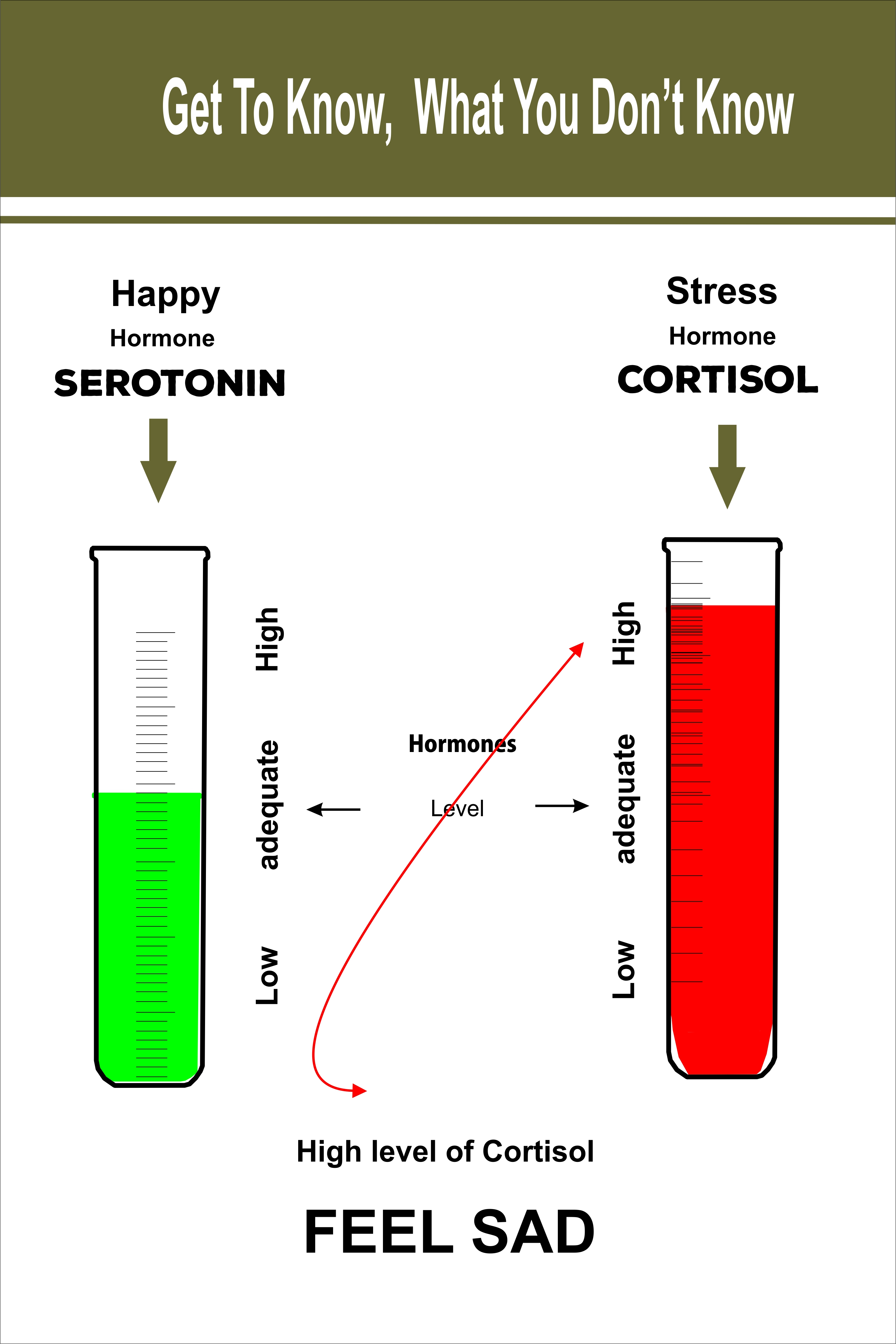 Serotonin and Cortisol hormones are the chemical messengers that travel, via our blood, to every organ and tissue. But how can you feel when there is too little or too much of a particular hormone running in your brain?